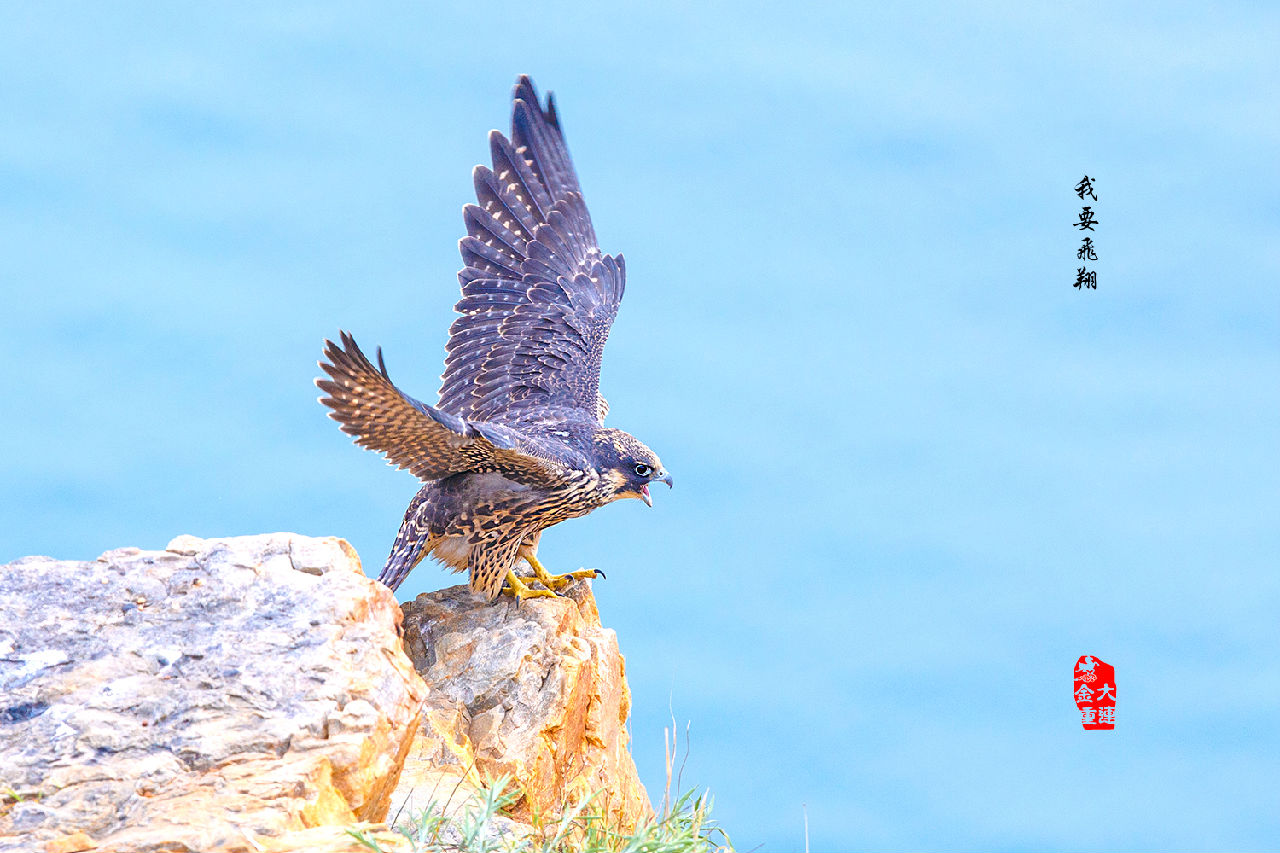 《崖頭展翅》—— 游隼