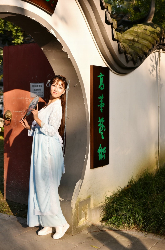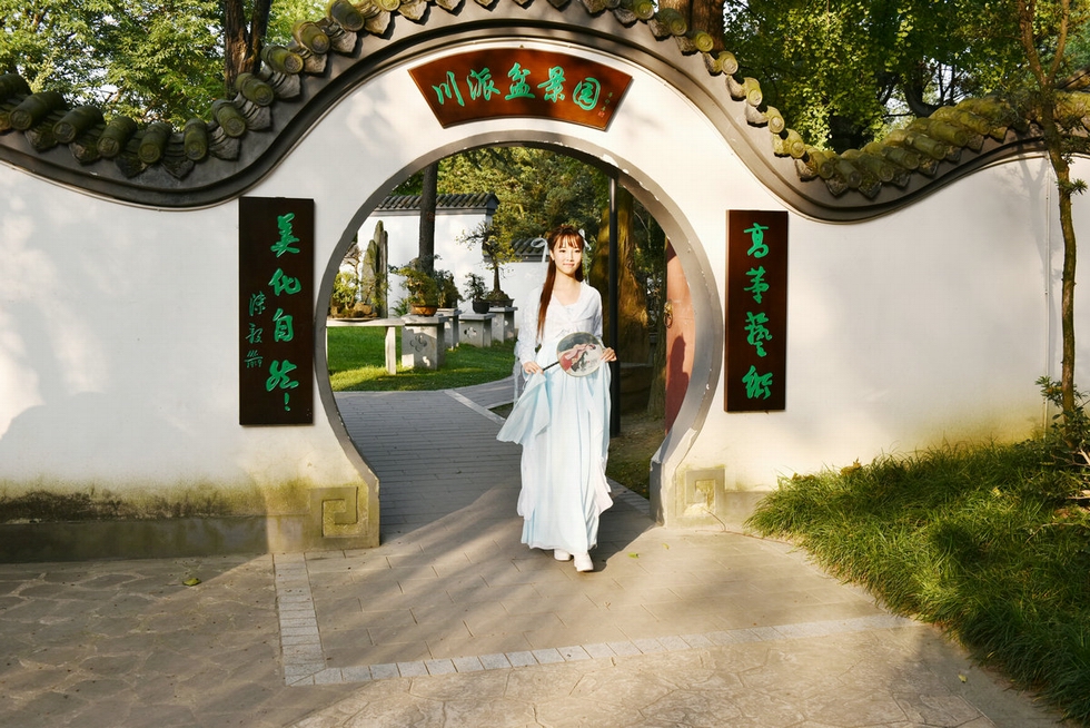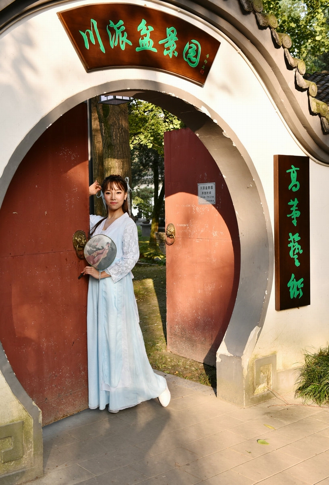 百花潭外拍活動作業(yè)五:閑庭信步盆景園的古裝美女
