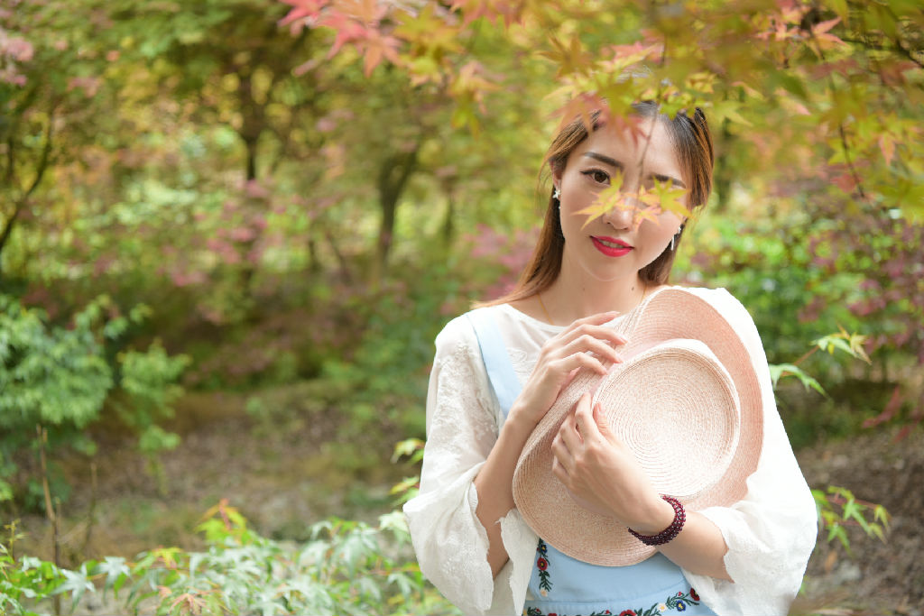 楓葉留丹春意濃
