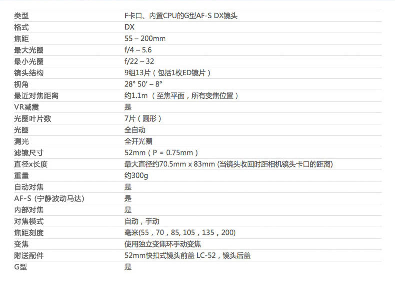 尼康A(chǔ)F-S 55-200mm f/4-5.6G VR防抖二代遠(yuǎn)攝長(zhǎng)焦鏡頭